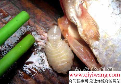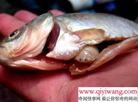 鲫鱼腹中惊现异形生物,十分恐怖!
