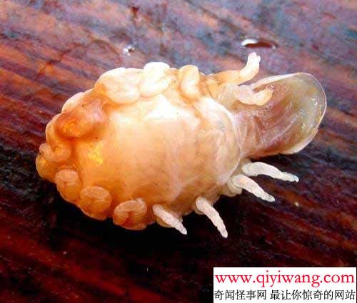江苏省连云港市区大庆东路的徐三家常菜馆,厨师在灶间锅台边剖鱼时,突然从一只巴掌大小的鲫鱼腹中缓缓地爬出一只乳白色的软体动物,吓得徐姓厨师撒腿就跑,边跑边叫,“不得了, 见鬼了,我从来未见到这种怪物。”几分钟后,记者赶到现场,只见灶间案板上的鲫鱼已经剖好,软体怪物在鱼腹中不断地向外“张望”,并试图爬出来,记者能清晰地看到怪物的“眼睛”。 在征得饭店厨师的同意后,记者用竹签将怪物拨出后,怪物便在案板上无方向地缓慢爬行,模样很像一只乳白色的小乌龟。记者用竹签将其翻过来,发现它的模样更加怪异,在半透明的腹部,竟密集地长出了14只脚爪,用竹签碰碰其爪子,爪子便自动缩到软体内,让人毛骨悚然。站在一旁的厨师直言不讳地告诉记者,长了这么大,厨师也干了许多年了,从鱼腹中钻出这么个怪物,还是头一回看到。如此可怕的生物,以后还会出现在哪里啊!人类以后要面对的都是些什么样的生物啊 !!太可怕了! 铭万